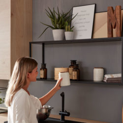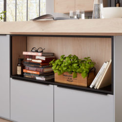 Elegant. Luxuriös. Puristisch. Das sind die ersten Eindrücke, wenn man die Interliving Küche in ihren edlen, dunklen Farben sieht. Wie zum Beispiel bei der Interliving Küche 3031 findet man Fronten aus dunkler Holzoptik und offene Regalboards, optimal ergänzt durch Metallgriffe aus Edelstahl. Die Planung von genügend Stauraum fällt ganz leicht durch ein geräumiges Hochschrankelement und übersichtliche Klapphängeschränke mit komfortabler Handhabung. Viele außenliegende Türelemente mit dem Push-to-open Prinzip ergänzen dies noch. Abgerundet wird der edle Alltagsbegleiter mit einem extrastarken Thekenaufsatz.