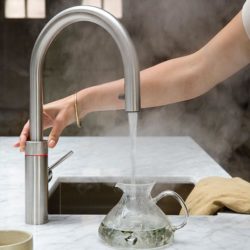 Sie können den Quooker bedenkenlos als Familie mit Kindern einsetzen. Durch den kindersicheren Druck-Dreh Knopf, einen doppelwandig-isolierten, höhenverstellbaren Auslauf und feste Montage auf der Arbeitsfläche wird jegliches Risiko minimiert und der Quooker ist sicherer als ein normaler Wasserkocher. Das kochende Wasser ist zusätzlich kein Strahl, sondern eine Mischung aus Wasser, Wasserdampf und Luft so kann man sich nicht verbrennen.